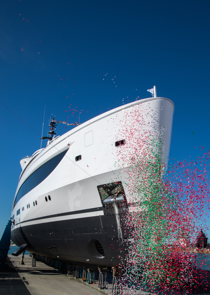 La doppia cerimonia di varo conferma il peso della produzione custom in acciaio oltre i 60 metri all’interno del portafoglio del cantiere livornese. La piattaforma B.Now 67M viene utilizzata come base tecnica comune — scafo, impiantistica principale, architettura di piattaforma — sulla quale si innestano poi layout, interior e specifiche di bordo sviluppate su misura.