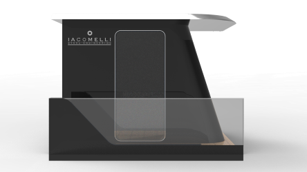 Iacomelli presenta la porta pantografo full glass elettrico in vetro stratificato su telaio in alluminio. Il sistema prevede comandi di apertura e chiusura con pulsanti a uomo presente, con possibilità di comandi remoti tramite Bluetooth, riconoscimento facciale o digitale.