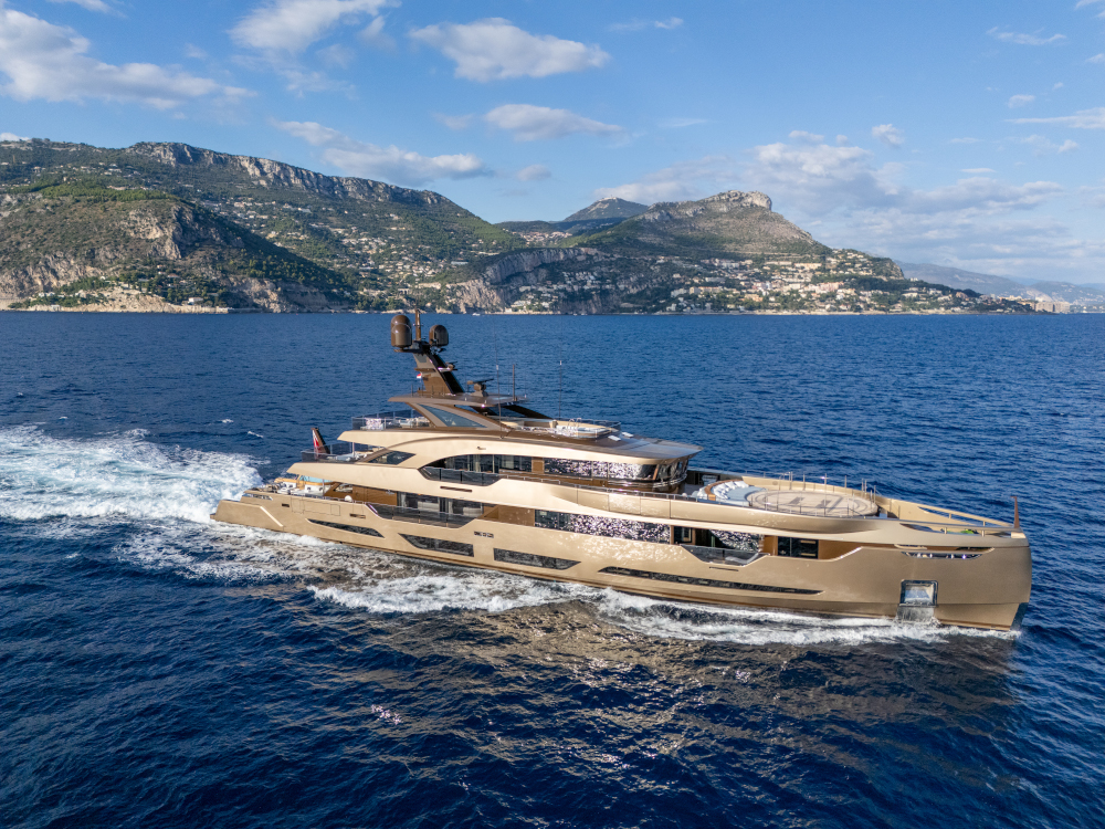 Fresco di varo, l'Admiral RAJA² (2025) porta la firma integrale, costruzione e design, di The Italian Sea Group e sarà esposto da IYC.