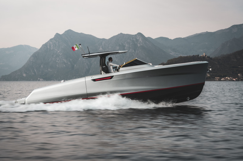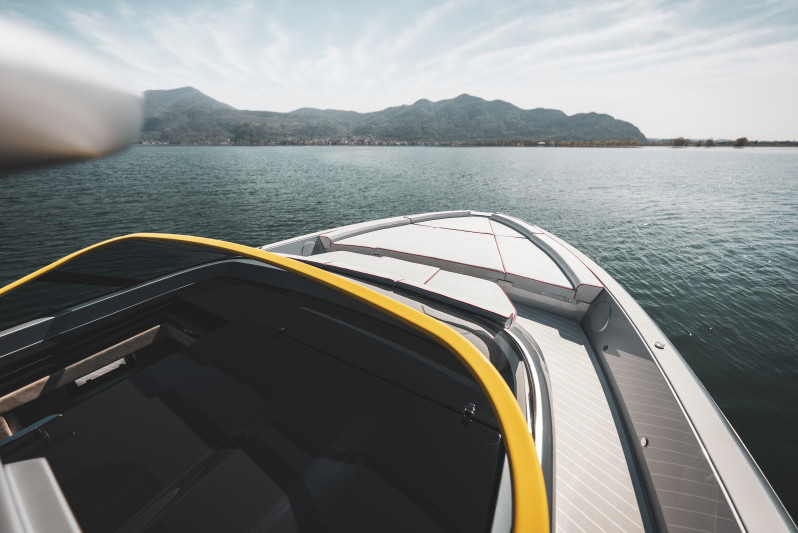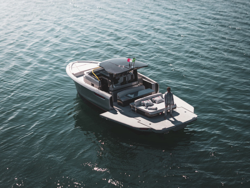 Dal punto di vista progettuale, il modello è stato sviluppato con l’obiettivo di coniugare prestazioni e fruibilità, rivolgendosi a un armatore interessato sia a un utilizzo dinamico sia a una permanenza a bordo nel fine settimana. Lo scafo è stato ottimizzato per garantire stabilità alle alte velocità, mentre il layout del pozzetto riprende logiche ergonomiche tipiche del motorsport. Gli interni, improntati a un design contemporaneo, includono una cabina twin a poppa, con un’impostazione orientata alla funzionalità nautica.