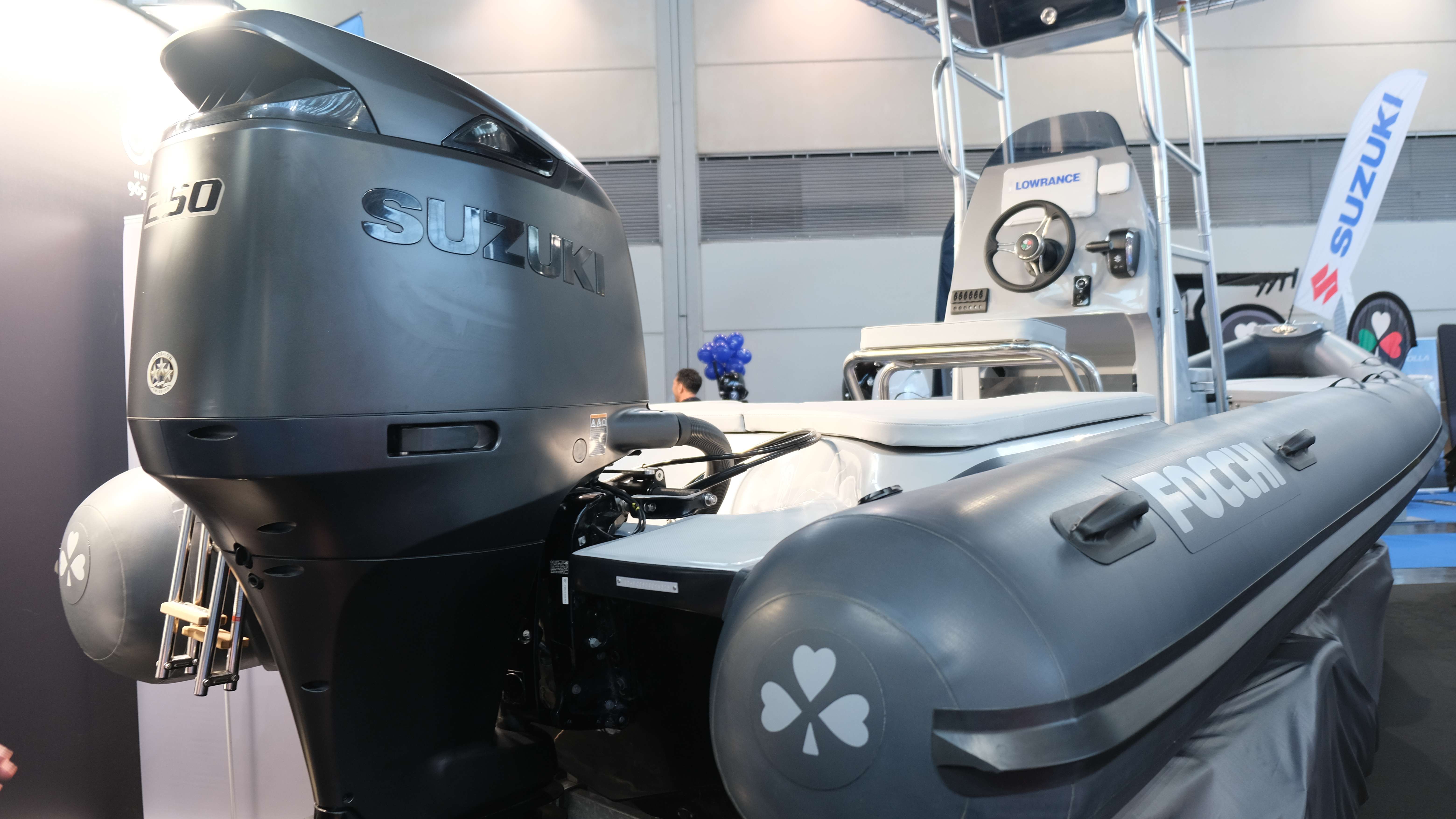 All’EUDI SHOW 2025 Suzuki esporrà anche il nuovo RIB Focchi 680 motorizzato con un fuoribordo Suzuki DF250 KURO, un motore da 4.028 cc caratterizzato dall’inedita livrea distintiva MATTE BLACK che lo rende unico e un nuovo piede che si caratterizza per un design che riduce ulteriormente gli attriti in acqua, aumentando le performance di questo fuoribordo.