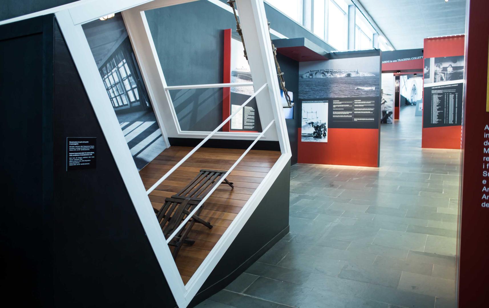 In pieno stile Galata questa esposizione temporanea, vuole essere una “Doria experience”: attraverso ricostruzioni di ambienti della nave, tra cui la prora in scala 1:5 e una parte di ponte di passeggiata inclinato a 30°, i visitatori sono invitati a ripercorrere i piani come i passeggeri e l’equipaggio dovettero fare per scampare alla tragedia.